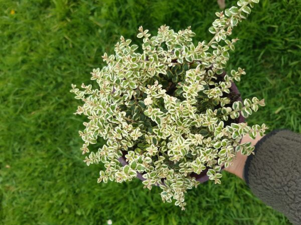 A variegated form of Metrosideros perforata. This is an excellent tub plant or can be trained as a climber up a rough surface. It is easy to grow but is frost tender.